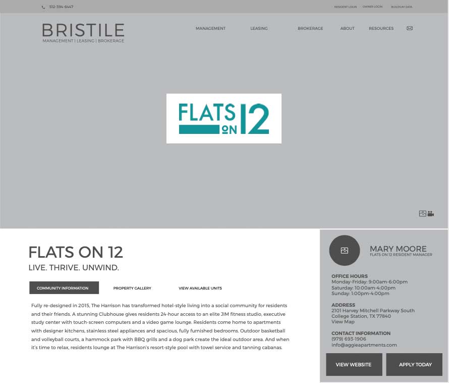 Living Proof Creative integrated Appfolio, a property management software, to Bristile’s website. This API integration allows users to browse available units within a specific property.