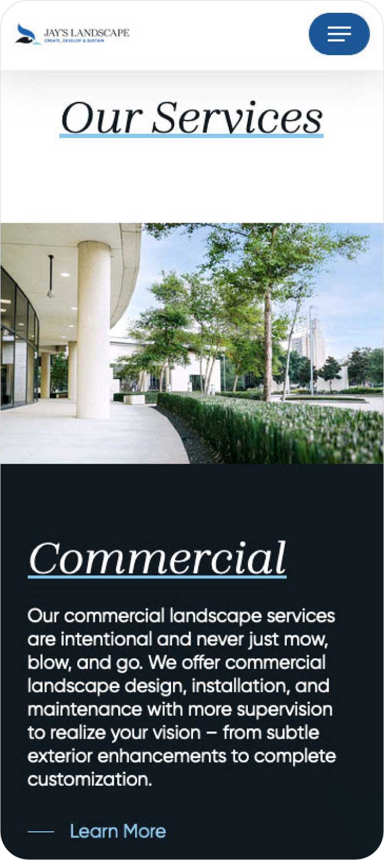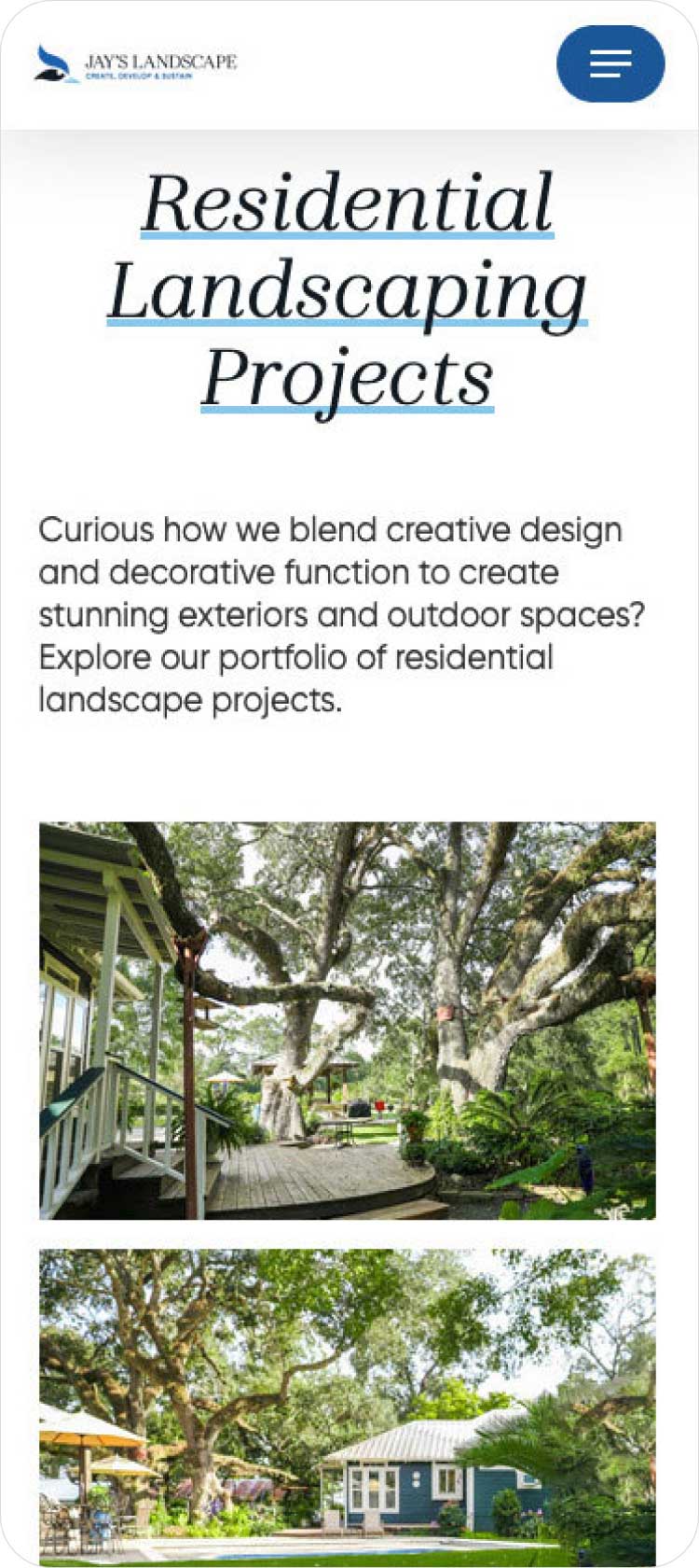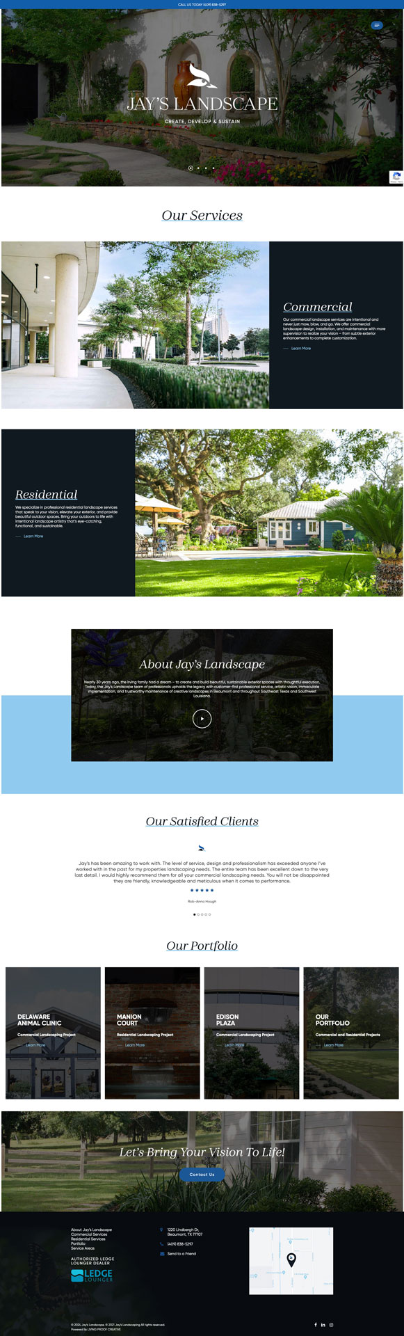 Jay’s Landscape has provided landscaping services to commercial and residential clients for over 30 years. So, when Living Proof Creative worked with them on their website project, it was important to not only showcase their beautiful portfolio of work, but to prepare optimized copy about their services so that they could continue to grow and expand their business.