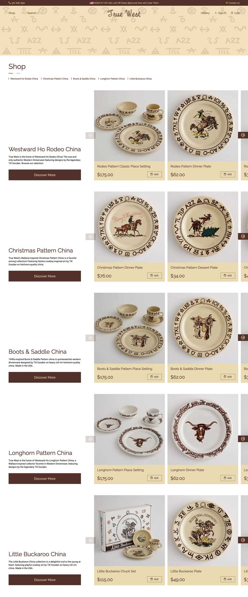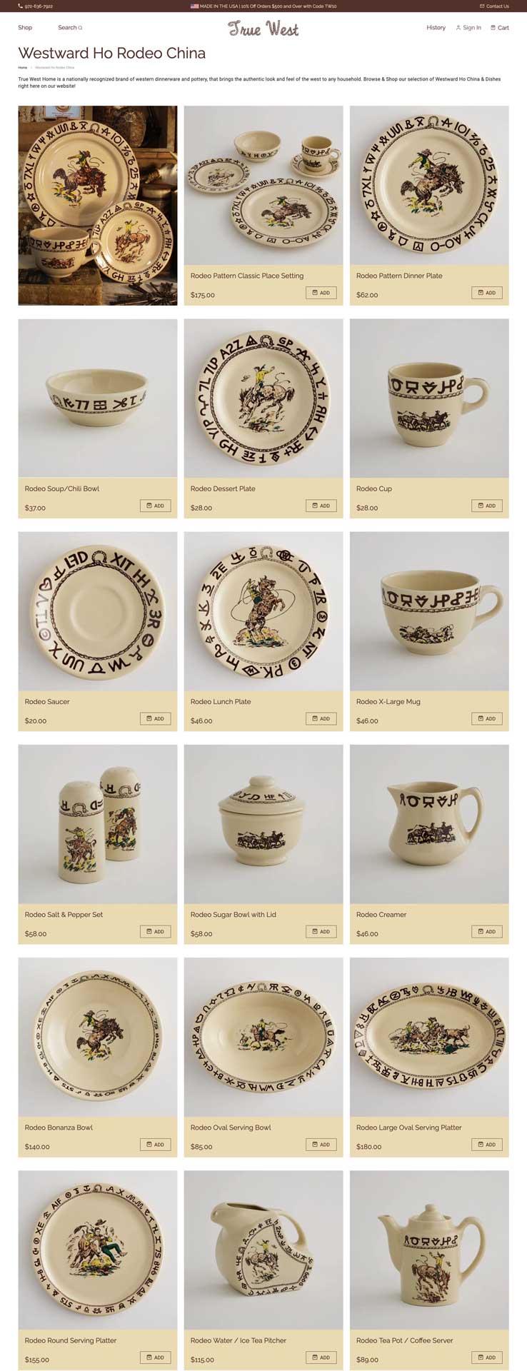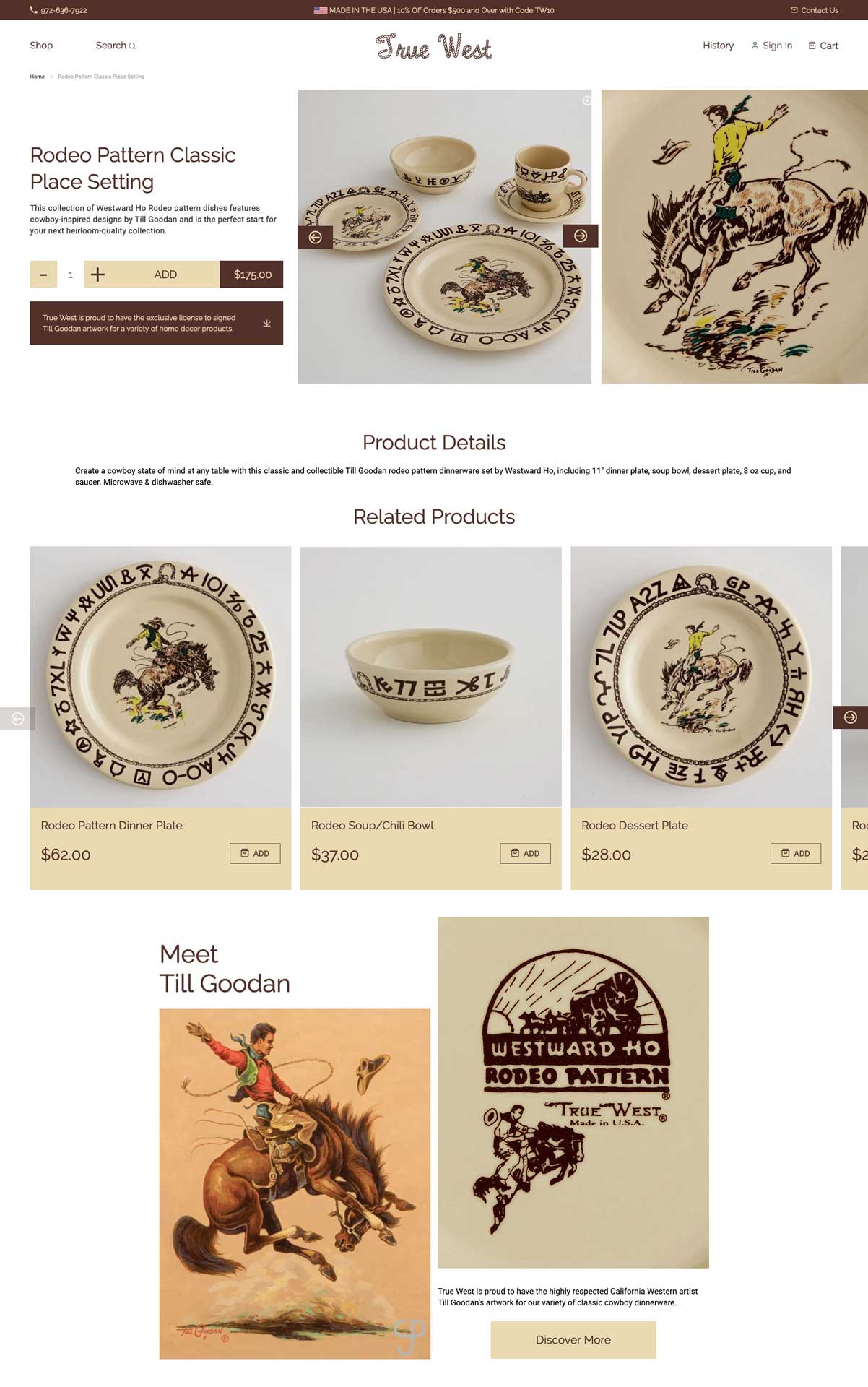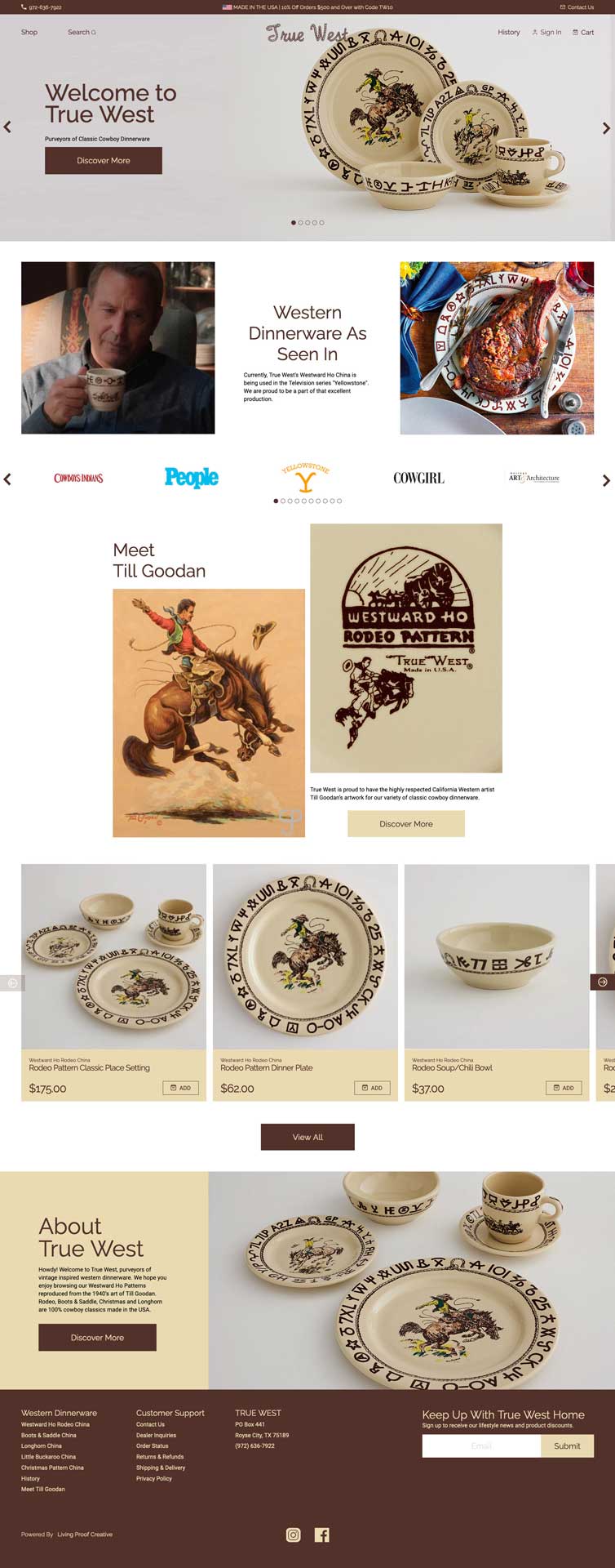 Living Proof Creative collaborated with True West Home to create a user-friendly, updated Magento 2 eCommerce store for their western dinnerware products. Their existing brand has gained popularity due to being featured on the television Yellowstone, and they needed a platform that could keep up with demand, make fulfillment more efficient and work seamlessly on mobile devices.