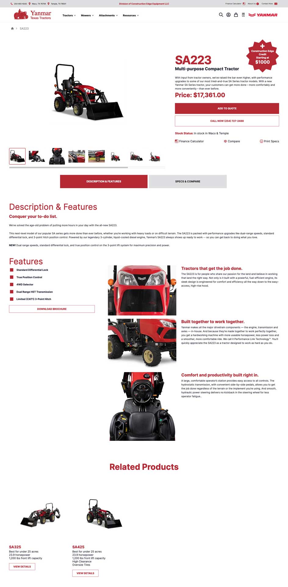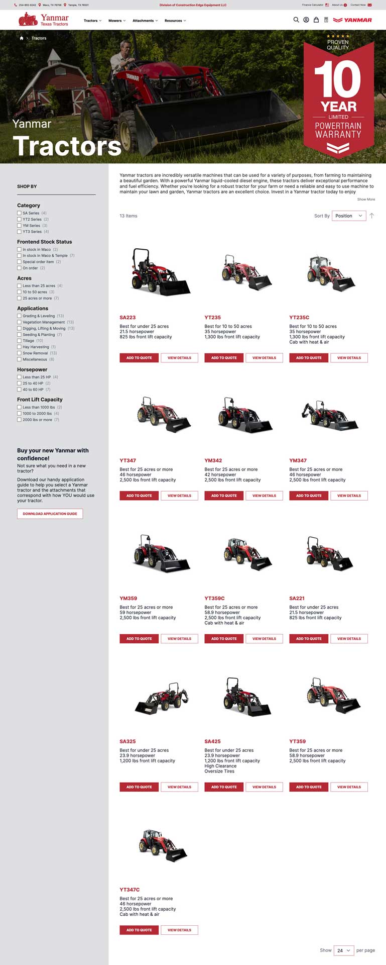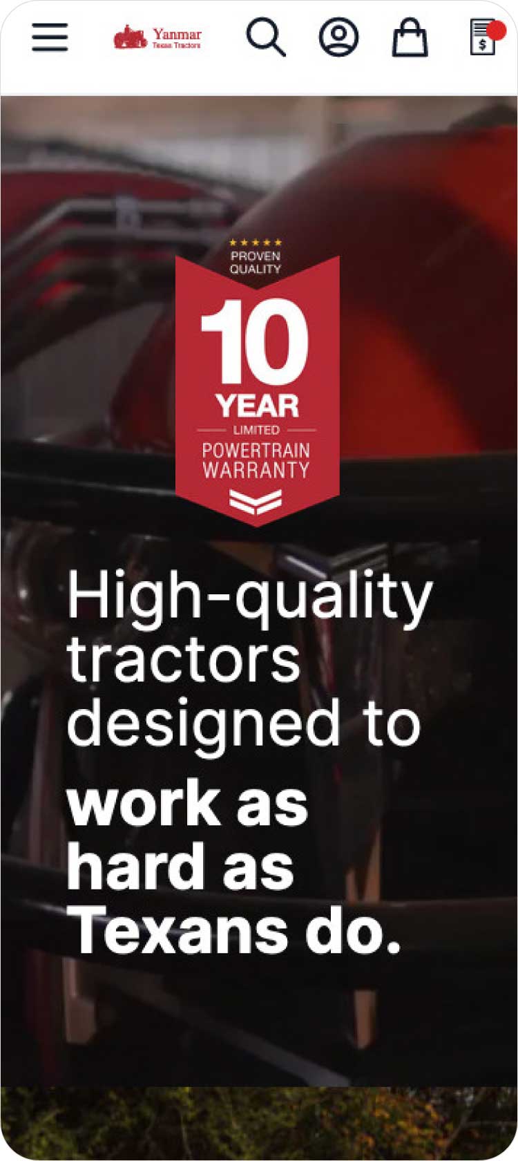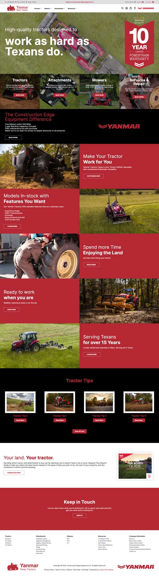 Living Proof Creative worked with Yanmar Tractors Texas to design and develop an updated Magento 2 eCommerce Store for tractors and mower sales in Central Texas.